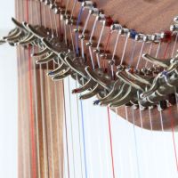Wir haben unsere eigenen performanten "rollenden" Halbtonklappen entwickelt. Ein kleines Rädchen rollt über die Saiten, kann exakt auf das Kaliber der Saite abgestimmt werden und erlaubt ein leichtes, schonendes und exaktes Umstellen der Halbtöne. Die Kennzeichnung von C und F Klappen wird durch dezente - aber gut sichtbare - hübsche farbige Steinchen erreicht.