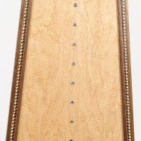 Eine elegante schlichte Verzierung sind Zierleisten in den Randleisten der Harfe - in Holz oder Perlmutt.