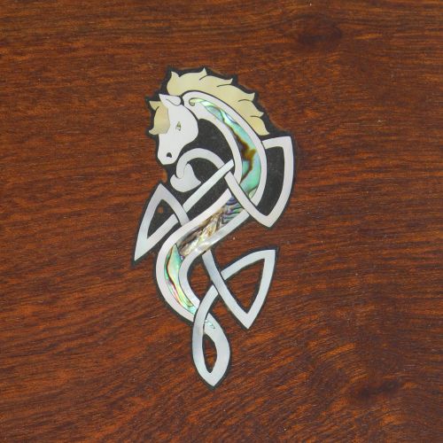 Sehr elegant und immer ein Hingucker; Perlmutteinlagen mit verschiedenen Motiven. In Abalone Perlmutt oder weißem Perlmutt, je nach Motiv.