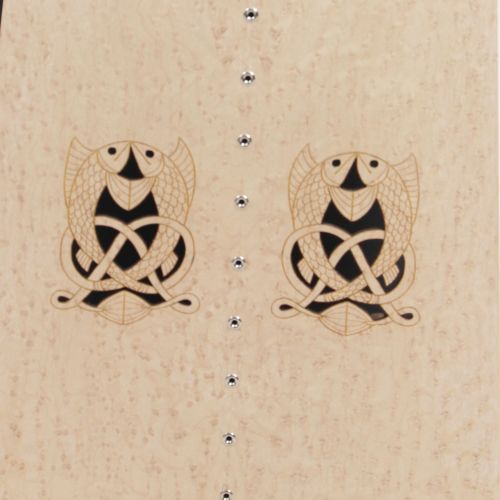 Früher gab es Harfen mit perforierten Klangdecken - wir haben diese Idee aufgegriffen und kombinieren das häufig mit der Gravur verschiedener Motive.