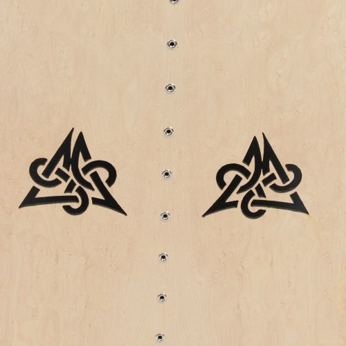 Früher gab es Harfen mit perforierten Klangdecken - wir haben diese Idee aufgegriffen und kombinieren das häufig mit der Gravur verschiedener Motive.