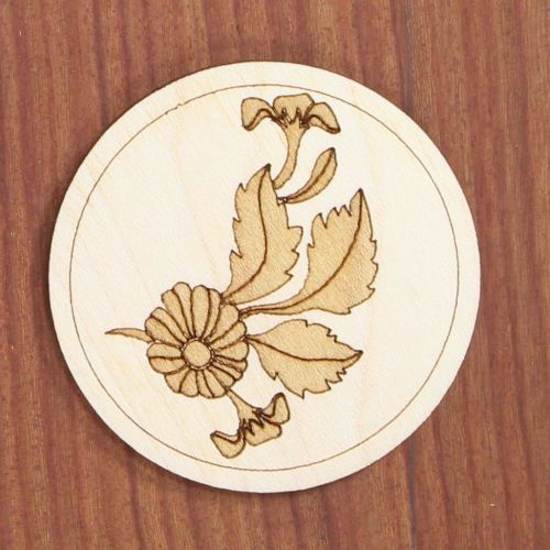 Stilisierte Blume graviert in einer Rosette.