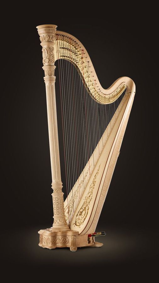The Flagship by Lyon & Healy. This harp is designed in a victorian style and does not only look, but also sounds impressive. The base and column are decorated with carvings of floral motives.