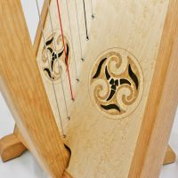 Früher gab es Harfen mit perforierten Klangdecken - wir haben diese Idee aufgegriffen und kombinieren das häufig mit der Gravur verschiedener Motive.