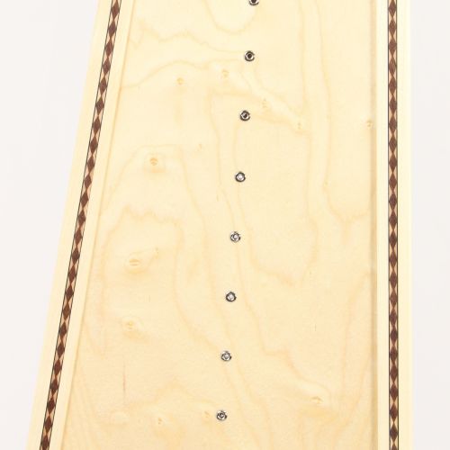 Eine elegante schlichte Verzierung sind Zierleisten in den Randleisten der Harfe - in Holz oder Perlmutt.