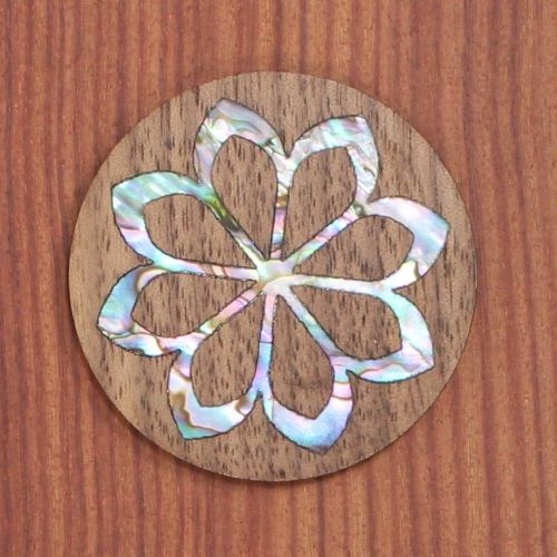 Schöne Intarsie als Rosette, in Abalone Perlmutt auf Nussbaum.