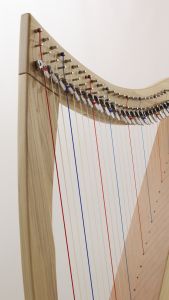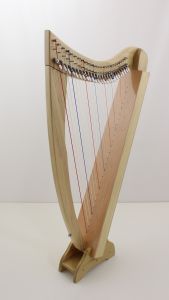 Diese kleine Harfe ist wahnsinnig praktisch, um beispielsweise zu reisen oder an Workshops teilzunehmen. Das Instrument kommt komplett in einer Transporthülle und kann entweder mit einem Gurt umgeschnallt werden oder mit einem Kniestock gespielt werden .Außerdem gibt es einen Standfuß,man könnte sie also auch zum spielen auf ein kleines Tischchen stellen.