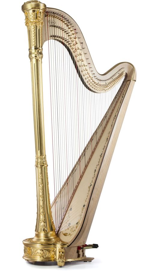 Diese majestätisch Harfe ist fein geschnitzt und erstrahlt im Glanz der 23-karätigen Vergoldung. Ein einmaliger Klang und eine atemberaubende Optik machen diese Harfe zum idealen Instrument für Orchester und Solisten.