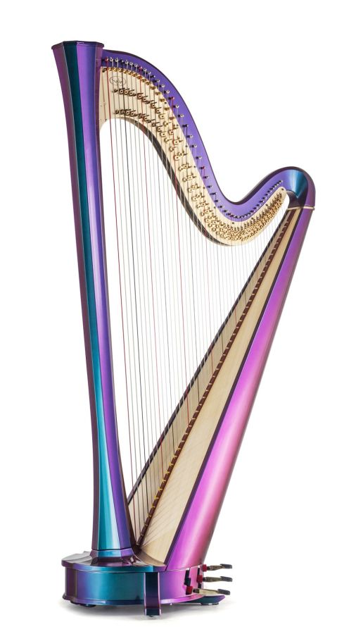 Elektroakustische Doppepedalharfe. Diese Ausführung ist von der größe vergleichbar mit dem Modell Daphne 47 SE.