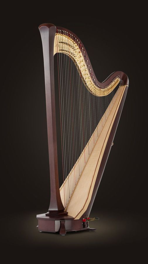 Elegante Harfe im modernen Design, ohne Verzierungen auf der Klangdecke. Einzigartiger, brillianter Klang, leichte Ansprache. Ausführungen: Ahorn Natur, Mahagonifarben gebeizt oder schwarz lackiert.